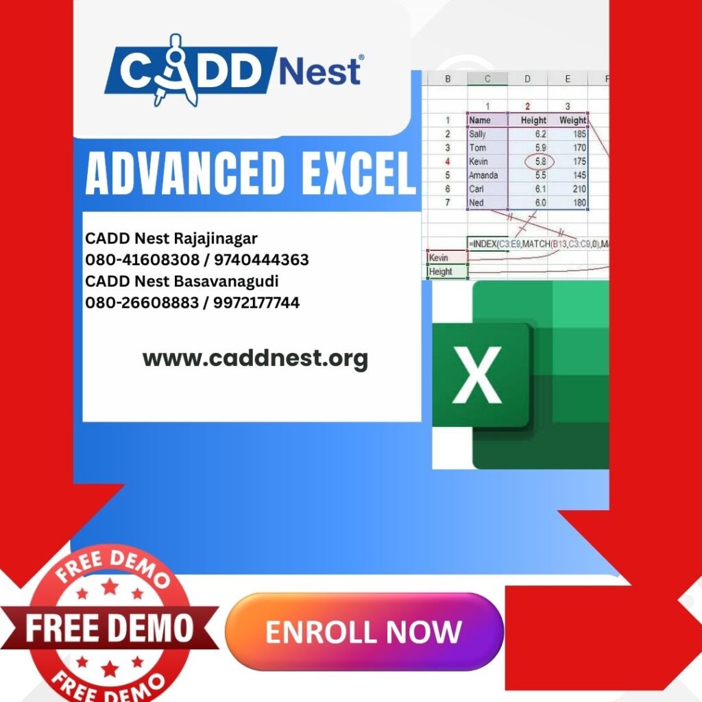 Advanced Excel training in Bangalore Excel course Bangalore Advanced Excel classes near me Excel certification course Bangalore Data analysis course Bangalore Excel training institute Bangalore CADD Nest Excel course