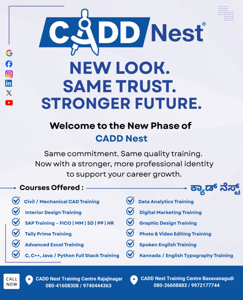 If you are searching for the best training institute in Bangalore, CADD Nest Training Centre stands out as one of the most trusted institutions offering professional certification courses with practical training and placement assistance.
