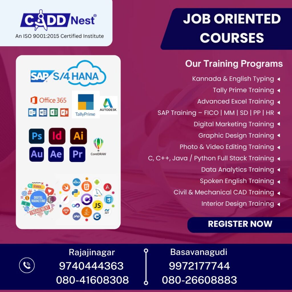 CADD Nest Basavanagudi is one of the most trusted job-oriented training institutes in South Bangalore, offering professional courses in SAP, CADD, IT, Data Science, Digital Marketing, and Software Development.