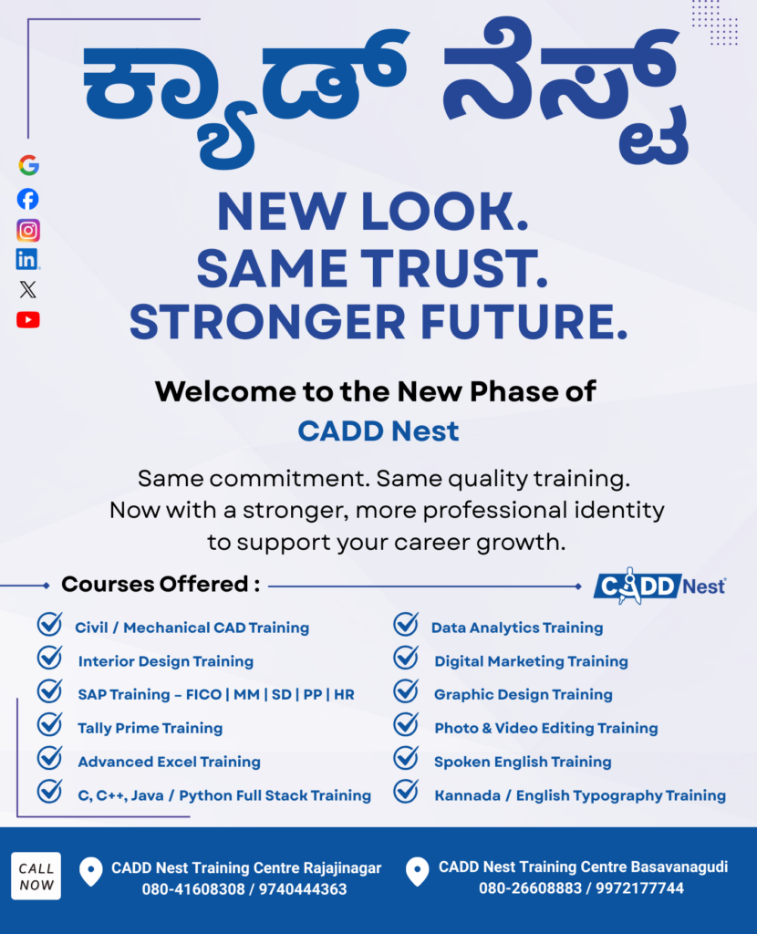 CADD Nest Basavanagudi is a trusted professional training centre in Basavanagudi, Bangalore, offering industry-oriented and job-focused courses for students, job seekers, and working professionals.