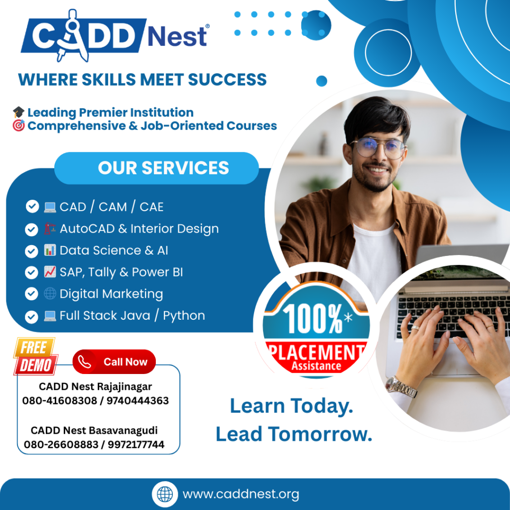 Bangalore, known as the technology and innovation hub of India, offers numerous opportunities in industries such as IT, engineering, finance, design, and digital marketing. Learning industry-relevant skills from a professional training institute like CADD Nest Training Centre can help individuals build strong careers.