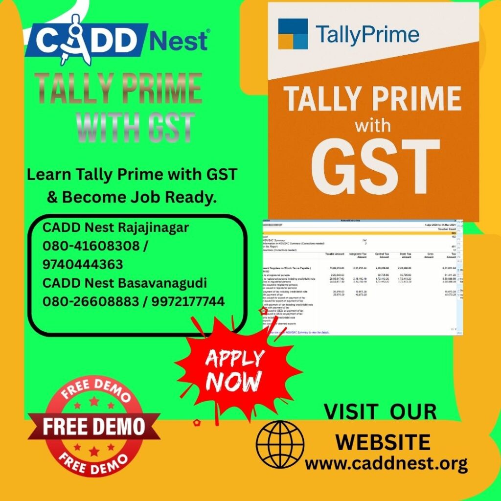 If you are searching for Tally training in Rajajinagar or Basavanagudi Bangalore, CADD Nest Training Centre provides professional training programs designed to help students and job seekers develop practical accounting skills.